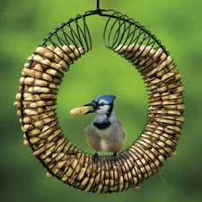 Bird feeding is a big business. There are all sorts of feeders to match every kind of taste and requirement. Thistle feeders are the favorite of goldfinches — only goldfinches and pine siskins can figure out how to feed upside down, which eliminates all the other birds who might like thistle, but have too hearty an appetite for the expensiveseed. Woodpeckers love suet feeders. Large capacity feeders are helpful so you don’t have to fill them every day. Fly through feeders appeal to birds who like a clear escape route (i.e. ALL birds). Cardinals like platform feeders. Chickadees, titmice, and bluejays love peanut feeders. Feeders with a cage keep out large birds like starlings and grackles who are boisterous, messy and eat ALOT.